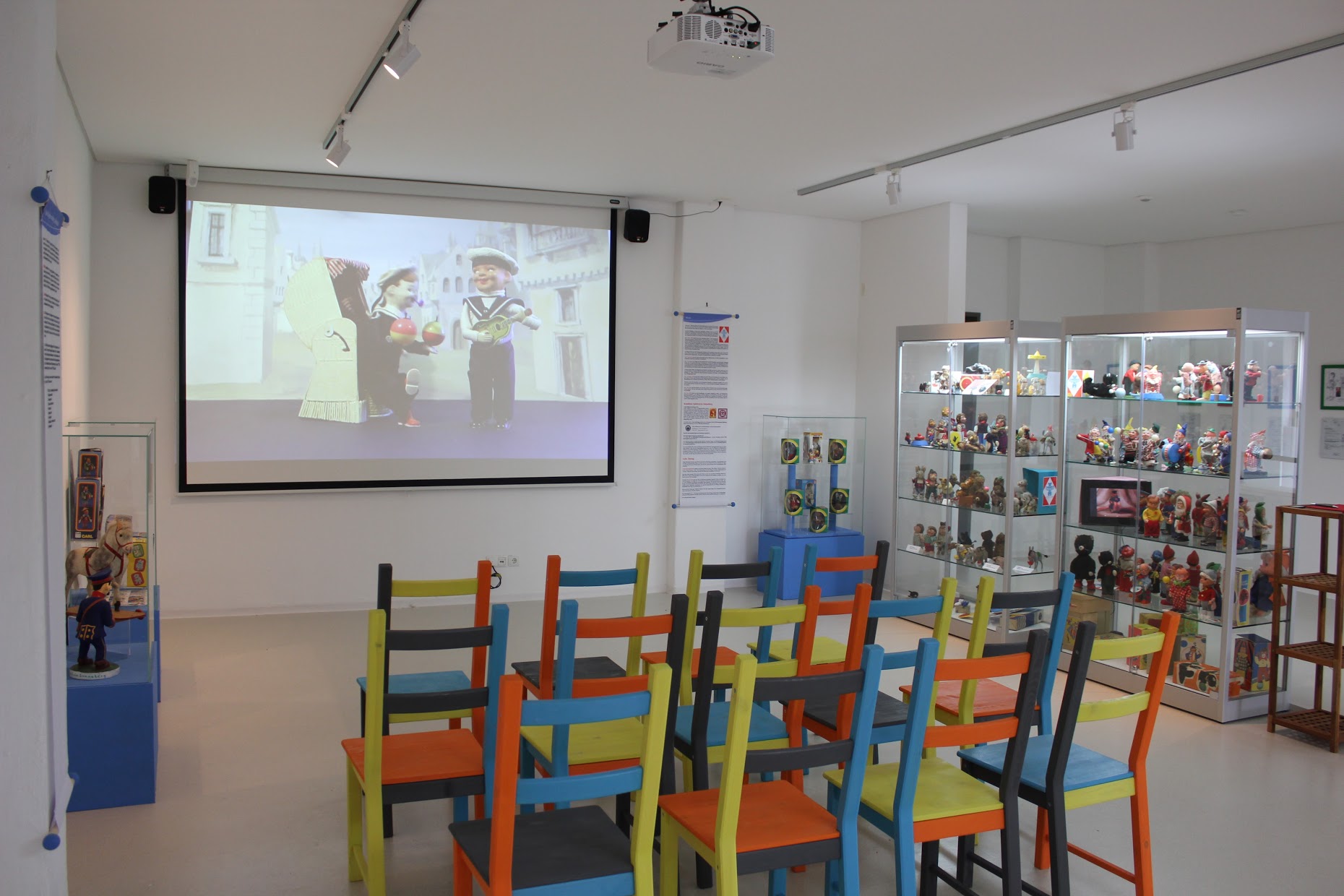 Mechanische Spielzeuge in Bewegung können die Besucher im Minikino der Ausstellung erleben. Hier brachte der Szenenbildner Götz Weidner seine Erfahrungen ein und erweckte vor eignen Bühnenbildern die Figuren filmisch wieder neu.